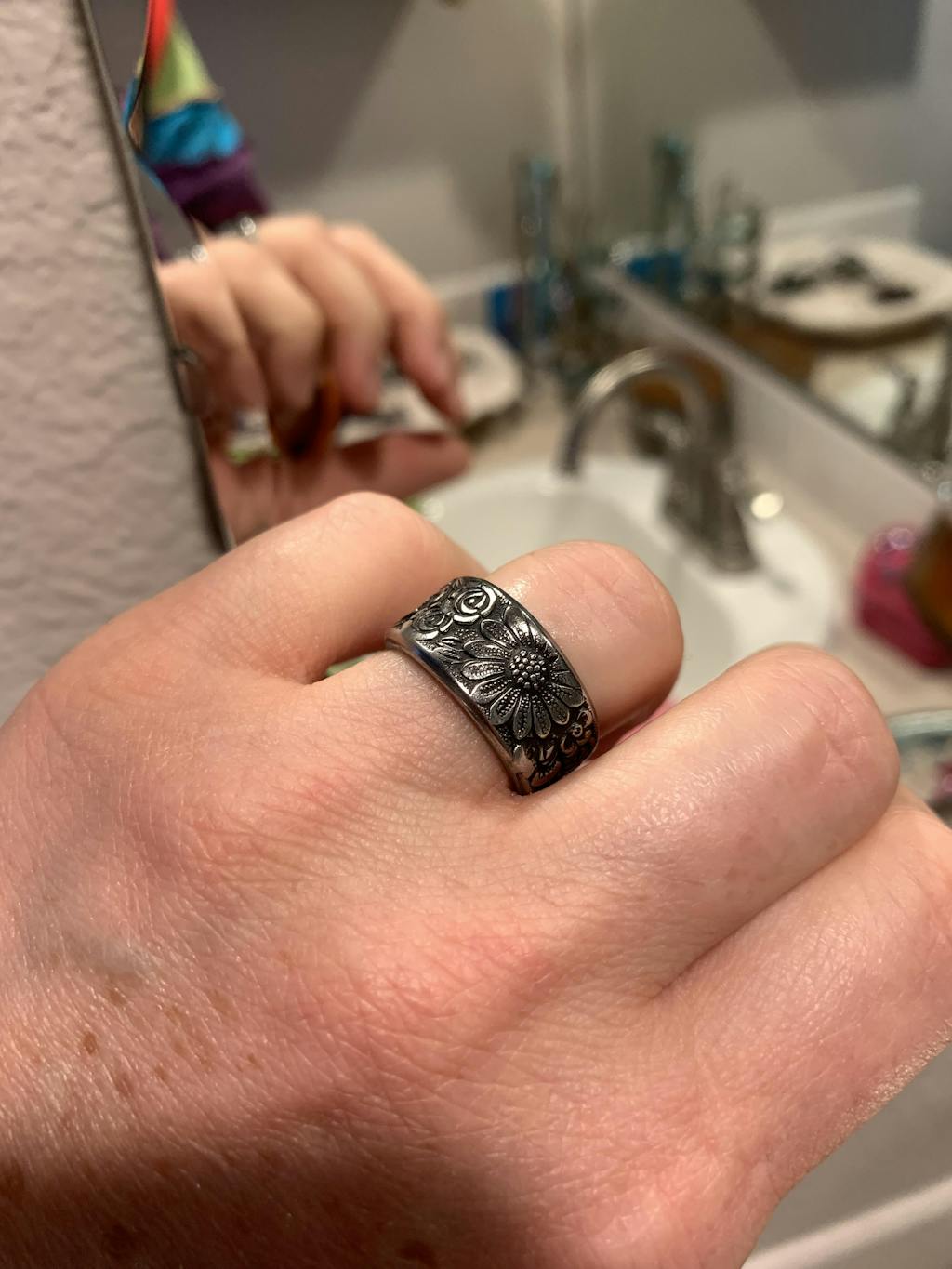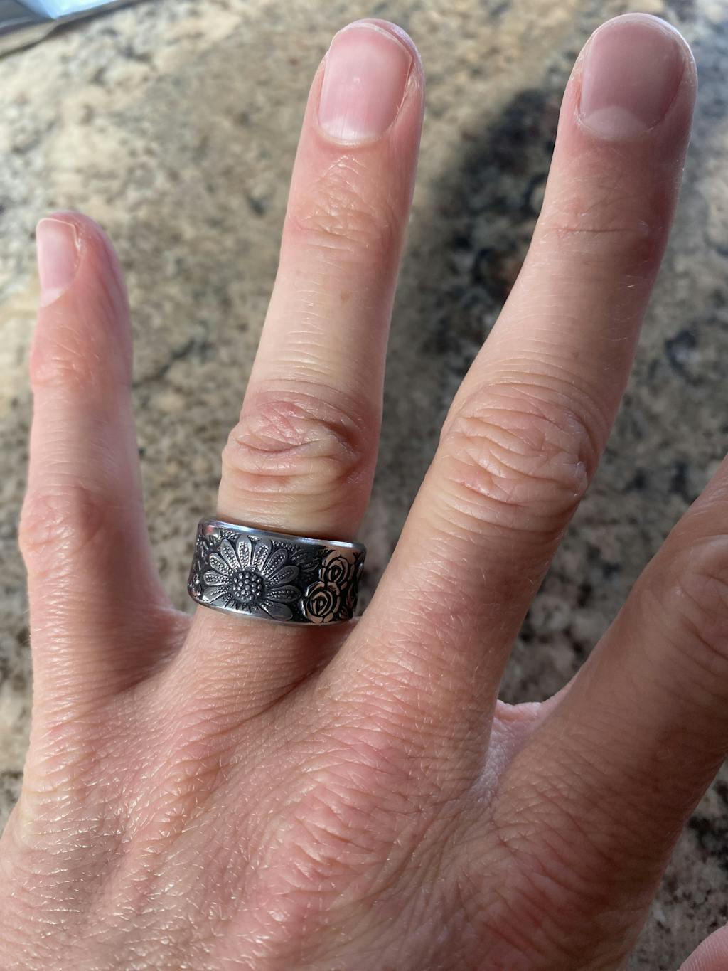 With the right amount of effort and heart, your dream, whatever it may be, shall bloom. This spoon ring has a beautiful floral design and comfortable fit.